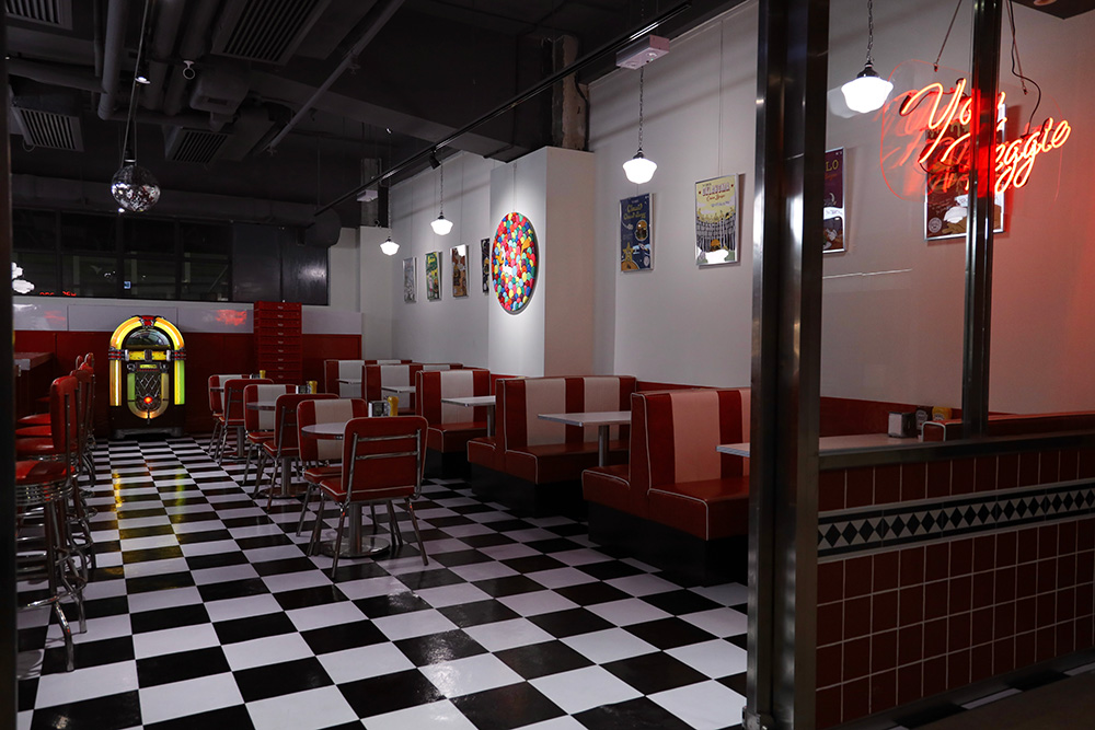Yau Veggie Diner 復刻50年代美式Diner文化為主題,糅合歷久常新的流行藝術文化,繪畫異想天開的可愛卡通角色,撰寫穿越時空的精彩漫畫故事,創作無限可能的美式經典素食。